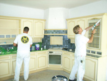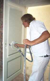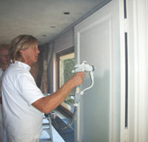 Dat muren en plafonds gespoten kunnen worden wist u waarschijnlijk al maar dat ook houtwerk gespoten kan worden is nieuw. Een techniek die we ontwikkelden i.s.m. de laboratoria van Sigma Coatings en Sikkens. De directe omgeving wordt afgeplakt en met één soepele beweging wordt de lak in één keer dekkend aangebracht. Vooral als de ondergrond in goede staat verkeert, is het effect verbluffend.