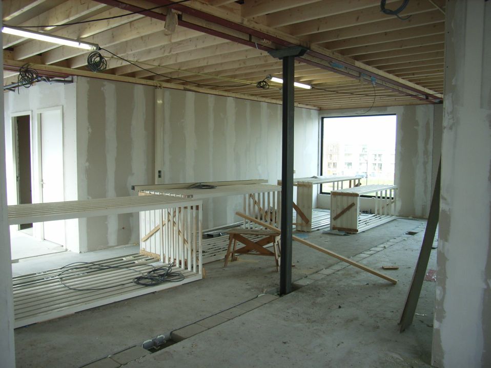 Al het houtwerk hebben we geschilderd en gespoten op het werk.